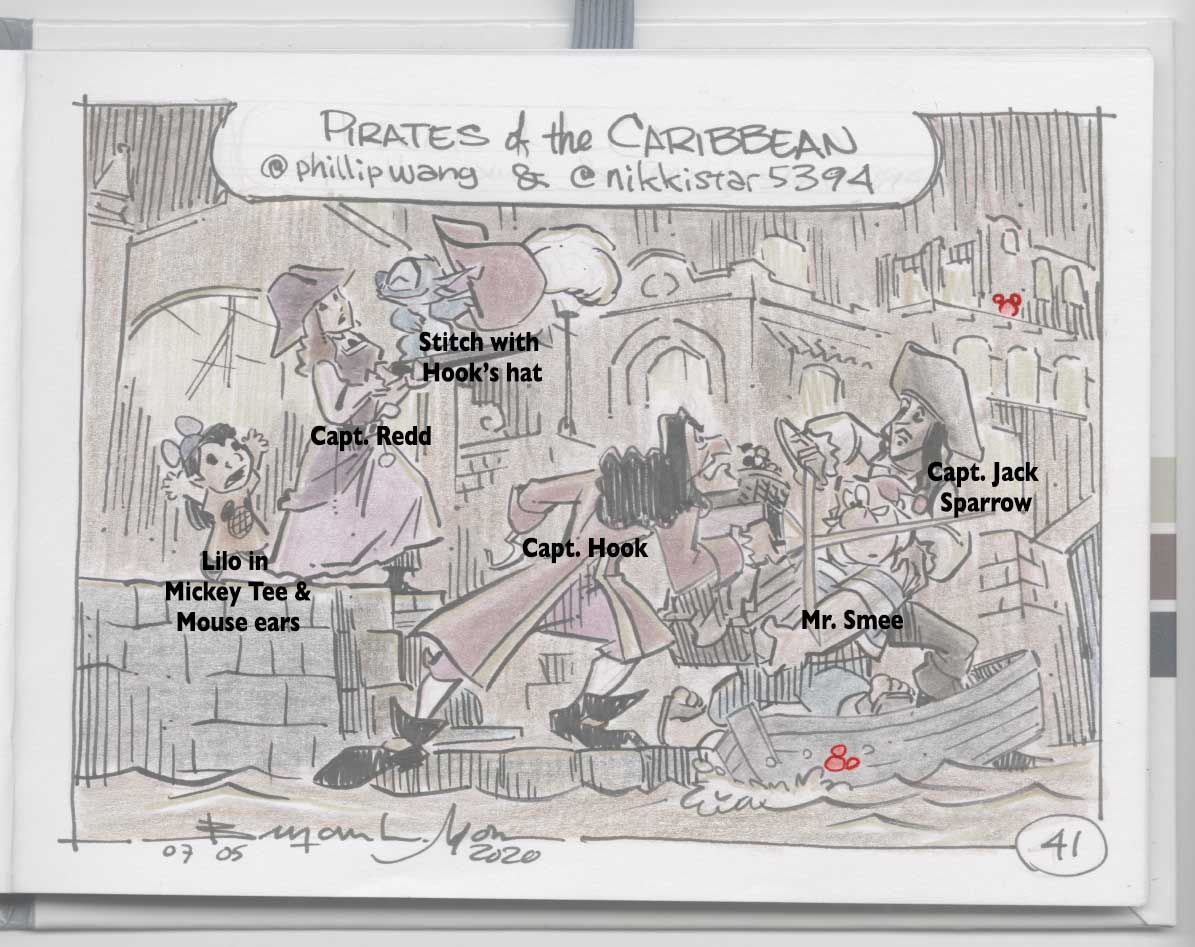 Meanwhile in back, Captain Redd has an encounter with Lilo and the newly self-titled Pirate-Captain Stitch.